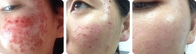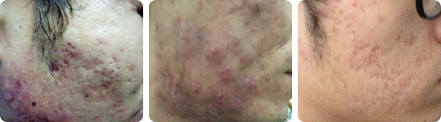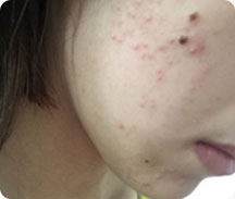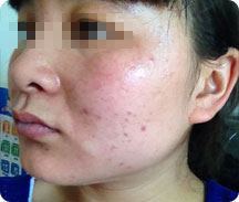 病情描述:面部患重度痤疮,皮肤的损害就是丘疹、脓疱、粉刺,经s过几次内外结合排毒治疗,炎症控制了,脓疱退了,现在脸上基本上已经正常了。